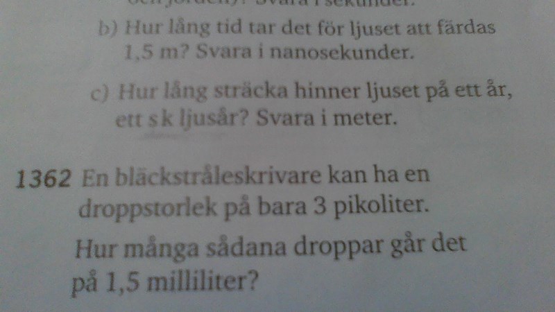 Det ända jag kommer fram till är att 3 pikoliter= 3 gånger 10 upphöjt till minus tolv. medan 1,5 milliter är lika med 1,5 gånger 10 upphöjt till minus 2.