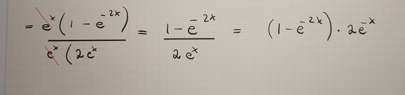 Jag skulle dela upp i två termer ex /(2e2x) och e–x / (2e2x).