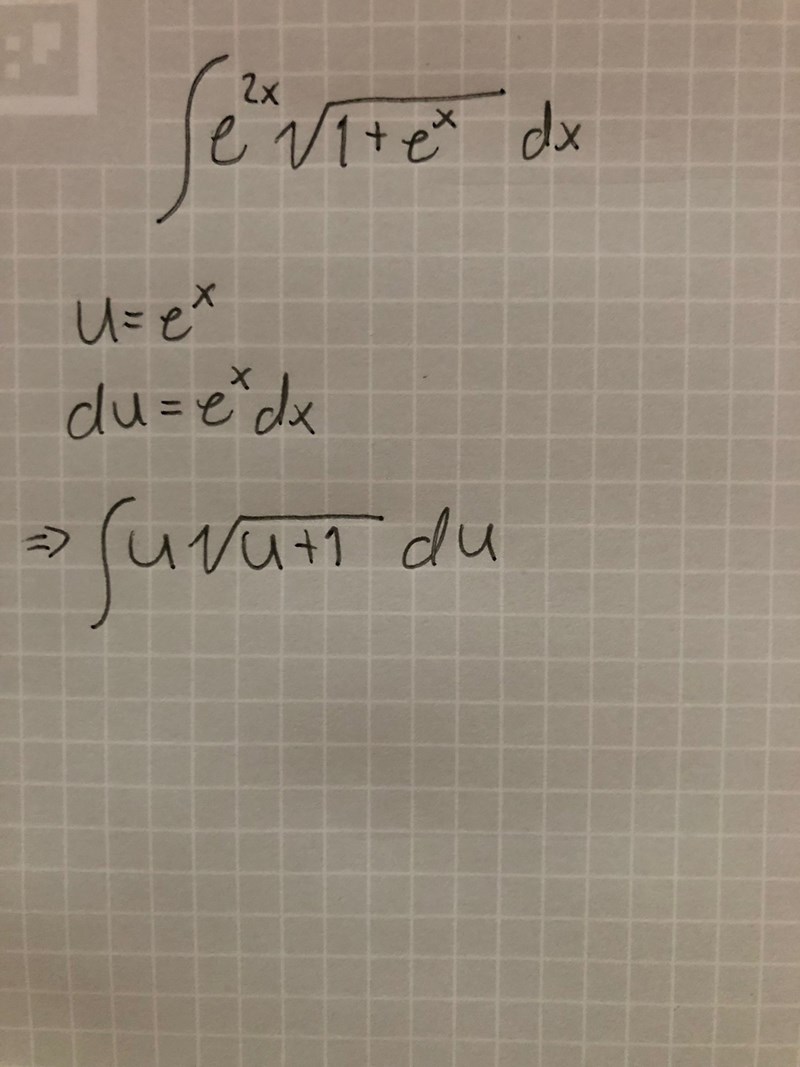 Okej, då tänker jag att jag gör skriver mitt dx som och kan då skriva och då försvinner ett . Sedan så sätter jag in mina u