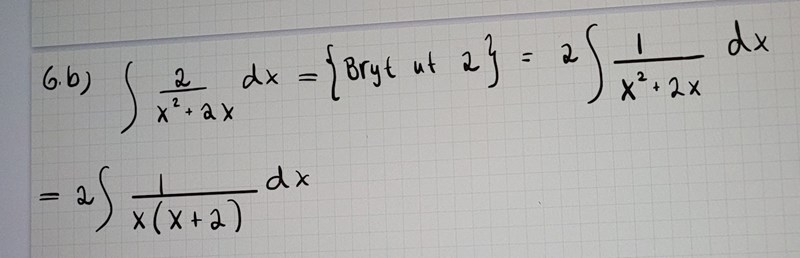 Bestäm A och B så att summan blir 1/((x(x+2)) så kan du lösa integralen