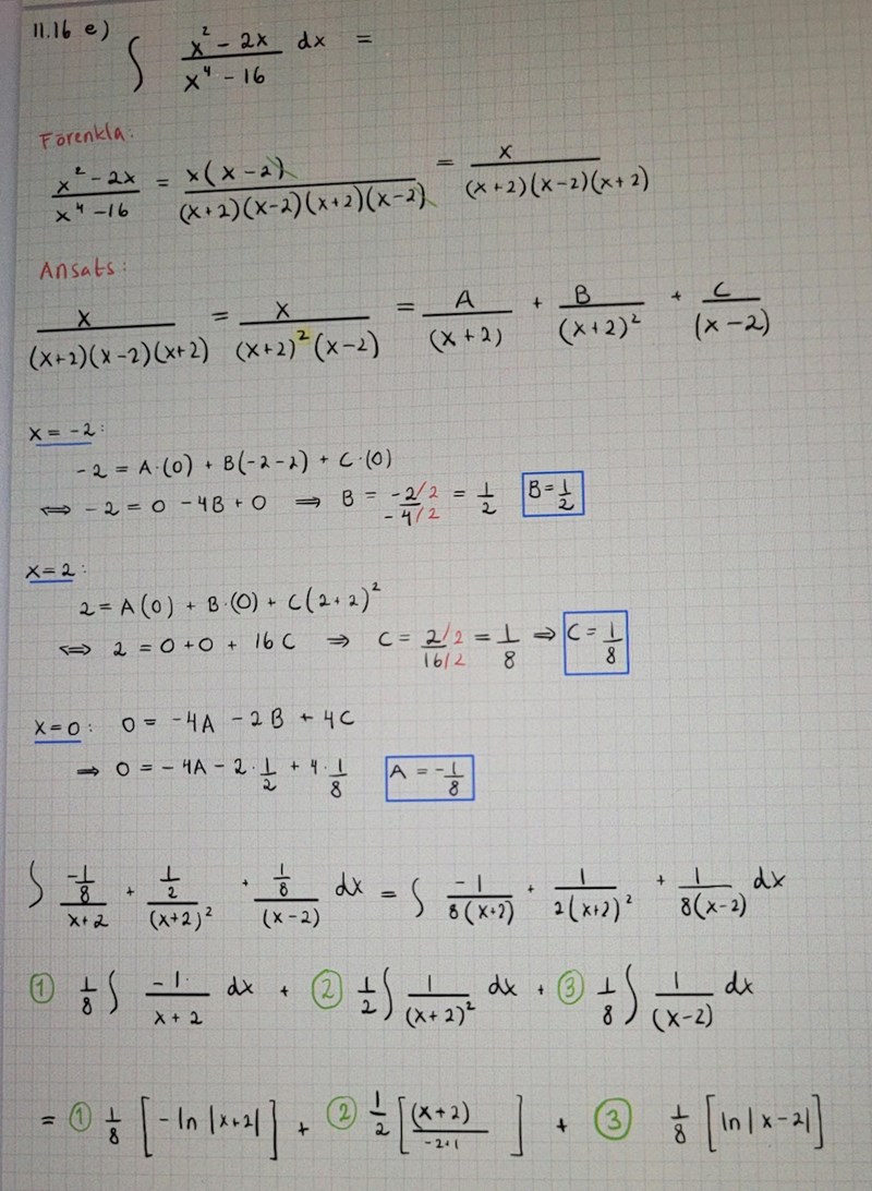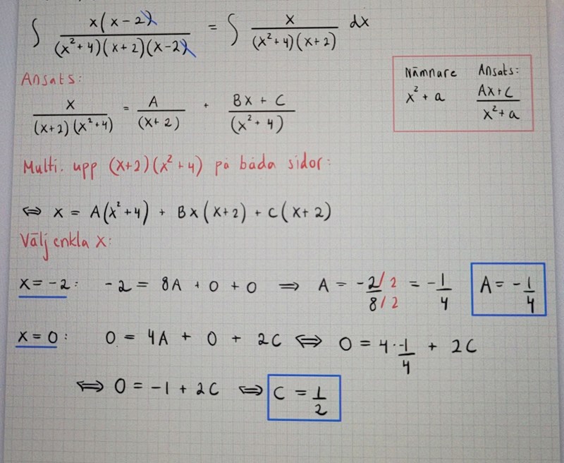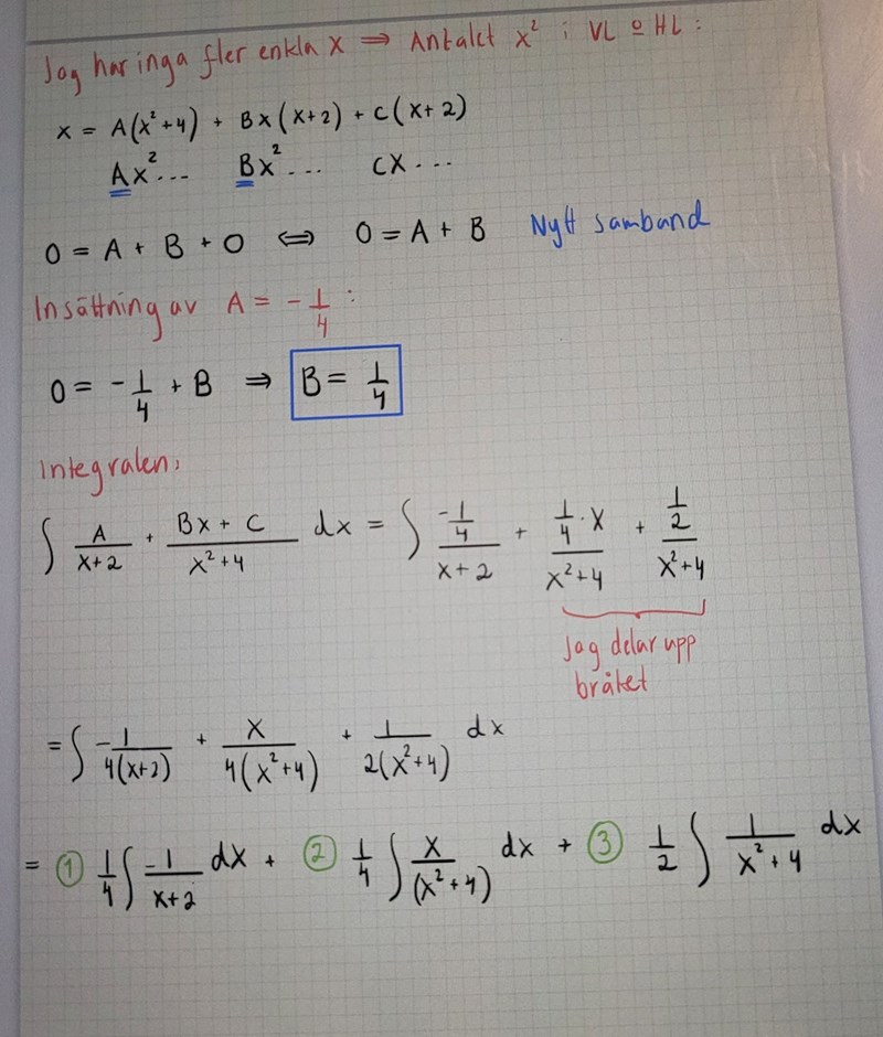 Det ska väl vara Bx+D ovanför (x+2)^2?