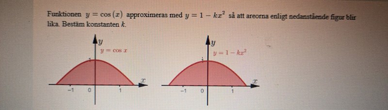 Vilket värde skall du sätta på k för att 1-k*x2 skall nå x-axeln på samma värden som för cos(x)?