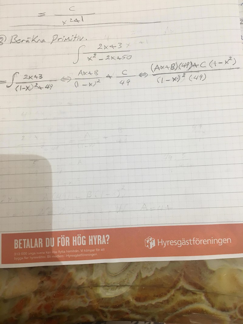 Jag försökt att göra primitiv funktion till det här uppgiften, å försökte med denna metod som jag tycker det är svårt! Vilken metod ska jag använda?