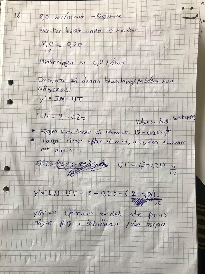 Jag satte V(t)=(2-0.2t), satte in i givna diff.ekvationen. Därefter löste ut y i Geogebra. Var det tanken med uppgiften?