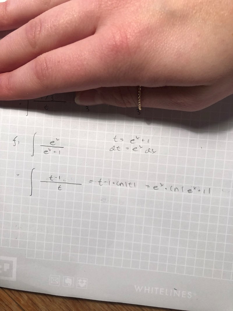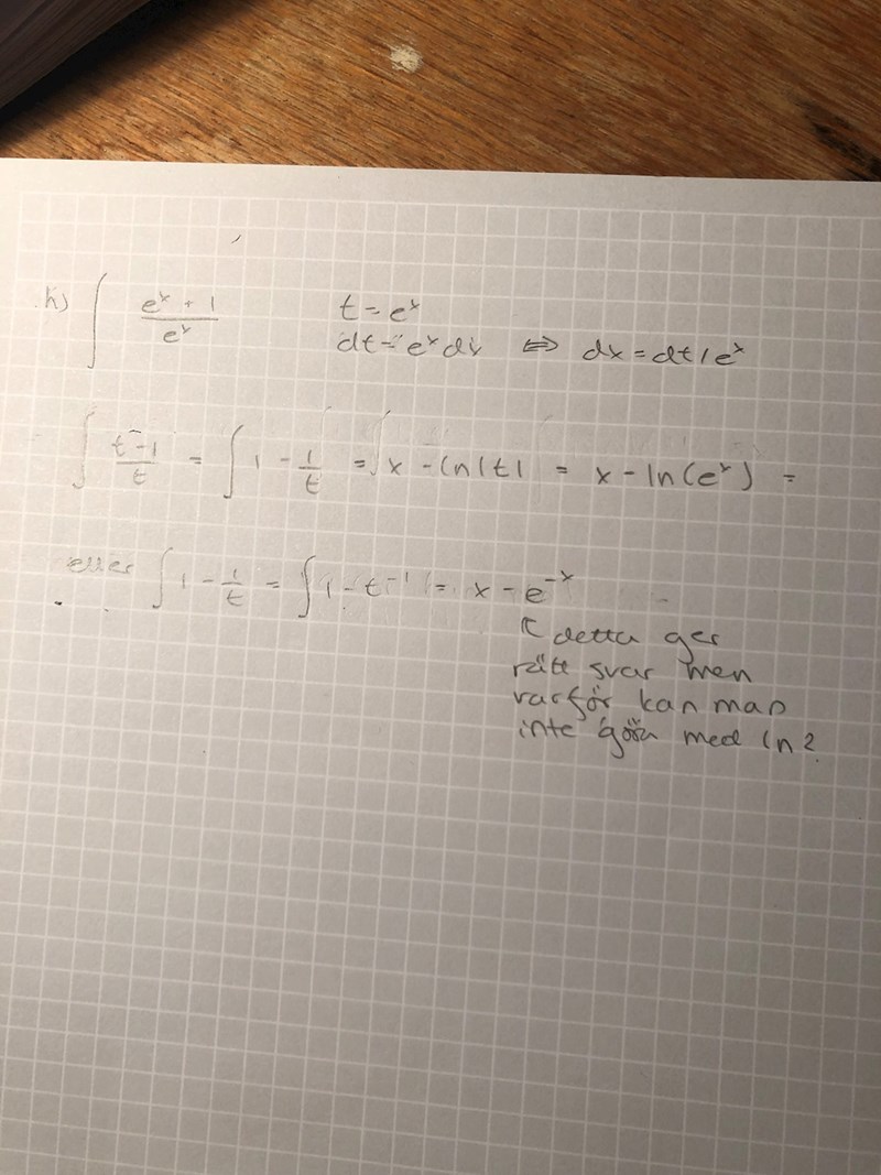 Först nu såg jag din bild, den kom senare. dx = dt/ (t–1) så uttrycket du ska integrera blir