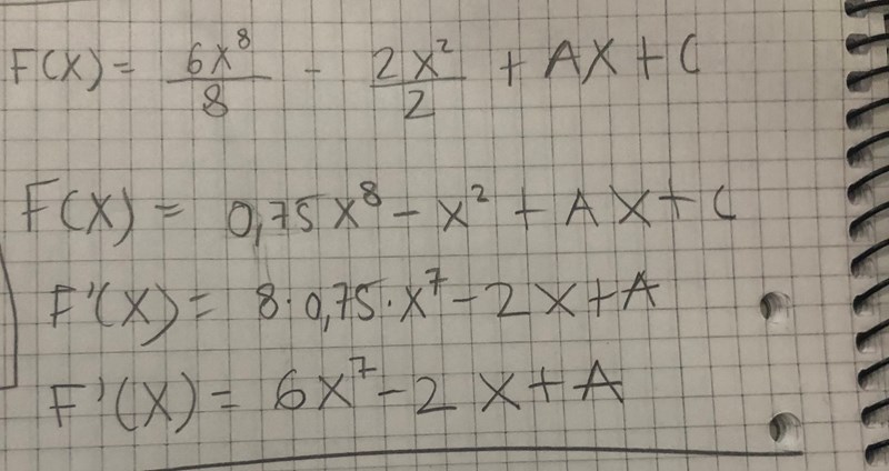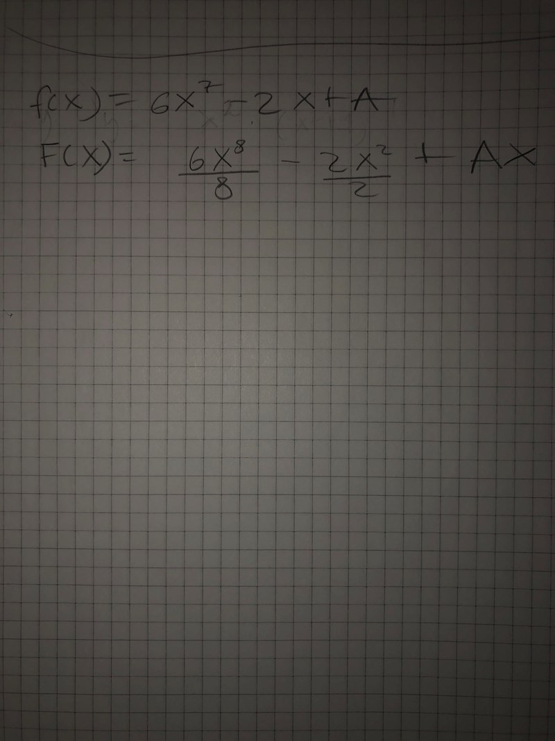F(x)= 6x^8/8 - 2x^2/2 + Ax + C?