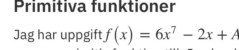 Jag ska skriva en primitiva funktionen till f(x). Undrar det rätt.