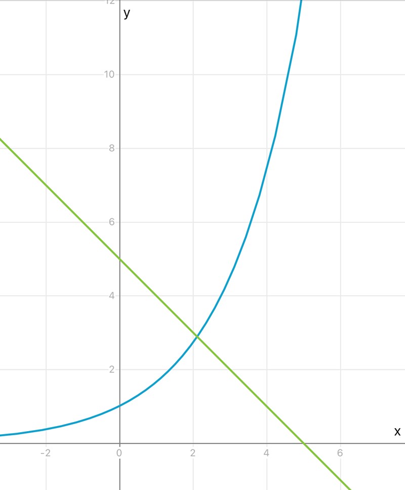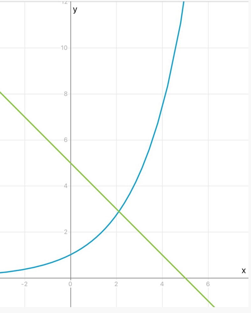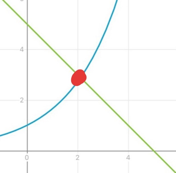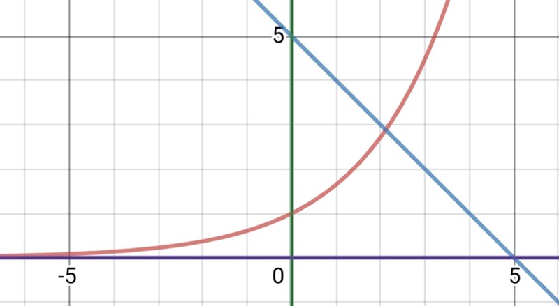 Vad menar du med att graferna inte har någon skärningspunkt? Med vad? Med varandra? Med koordinataxlarna?