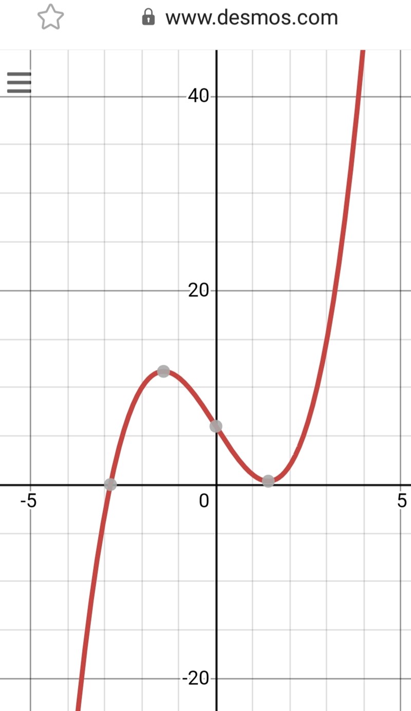 En tredjegradsfunktion har aldrig mer än två sådana punkter. Det hänger ihop med att derivatan av en tredjegradsfunktion är en andragradsfunktion och en sådan har aldrig fler än två nollställen.