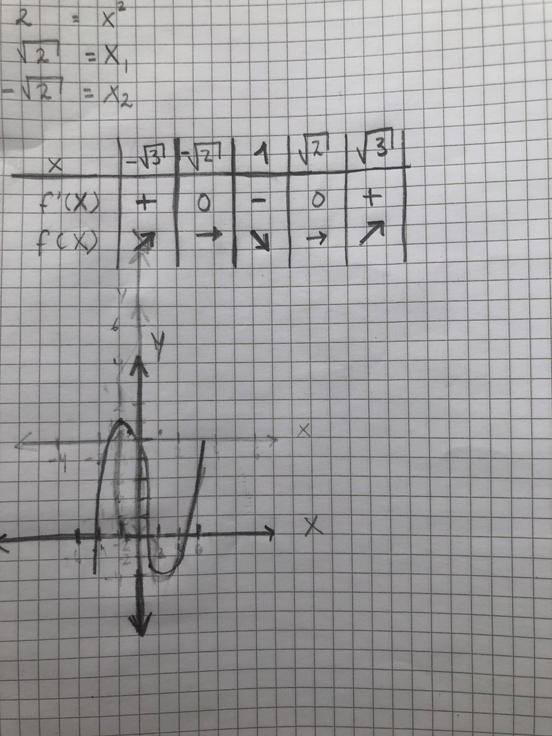 4. Varför har du ändrat till negativ lutning där den enligt teckentabellen ska vara positiv (för x<-2x<-\sqrt{2})?