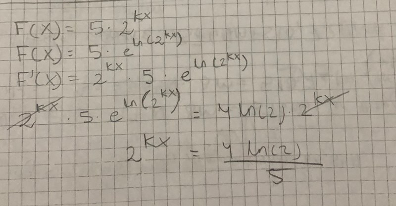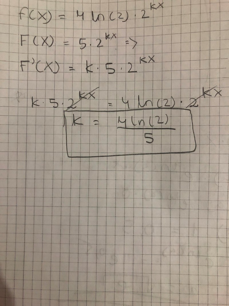 Menar du f(x)=4ln(2)* 2kx och F(x)=5*2kx?