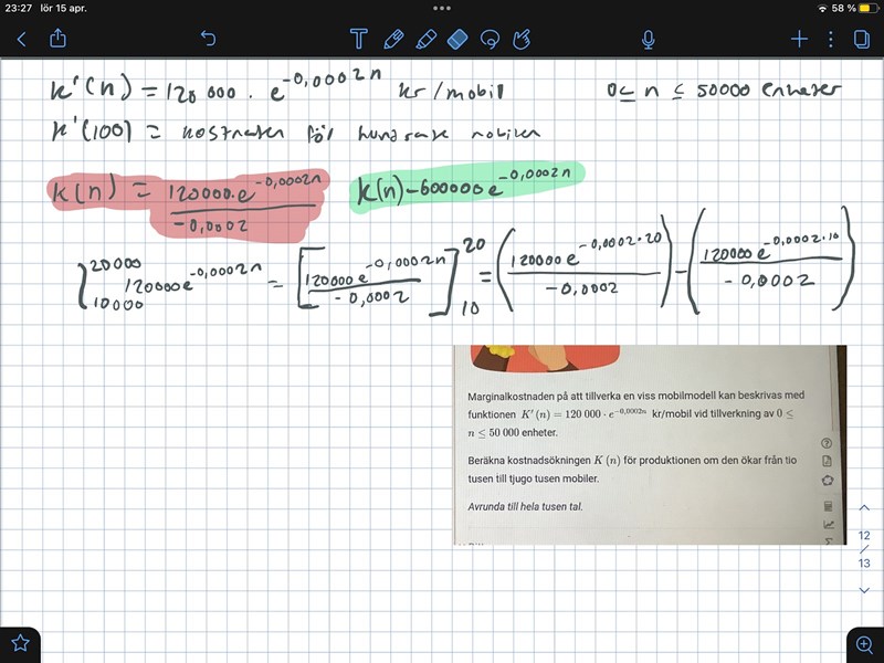 Mohammad Abdalla skrev:Ni har egentligen samma svar, din K(n) är i kronor och facits K(n) är i tusen kronor.