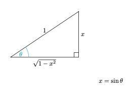 Här gör vi ett trigonometiskt variabelbyte. Hjälptriangel: