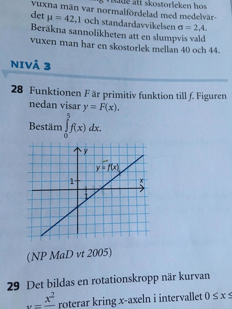 Dock lite tvetydigt i figuren där man skriver att den räta linjen står för f(x) medan man i texten säger att den visar F(x)