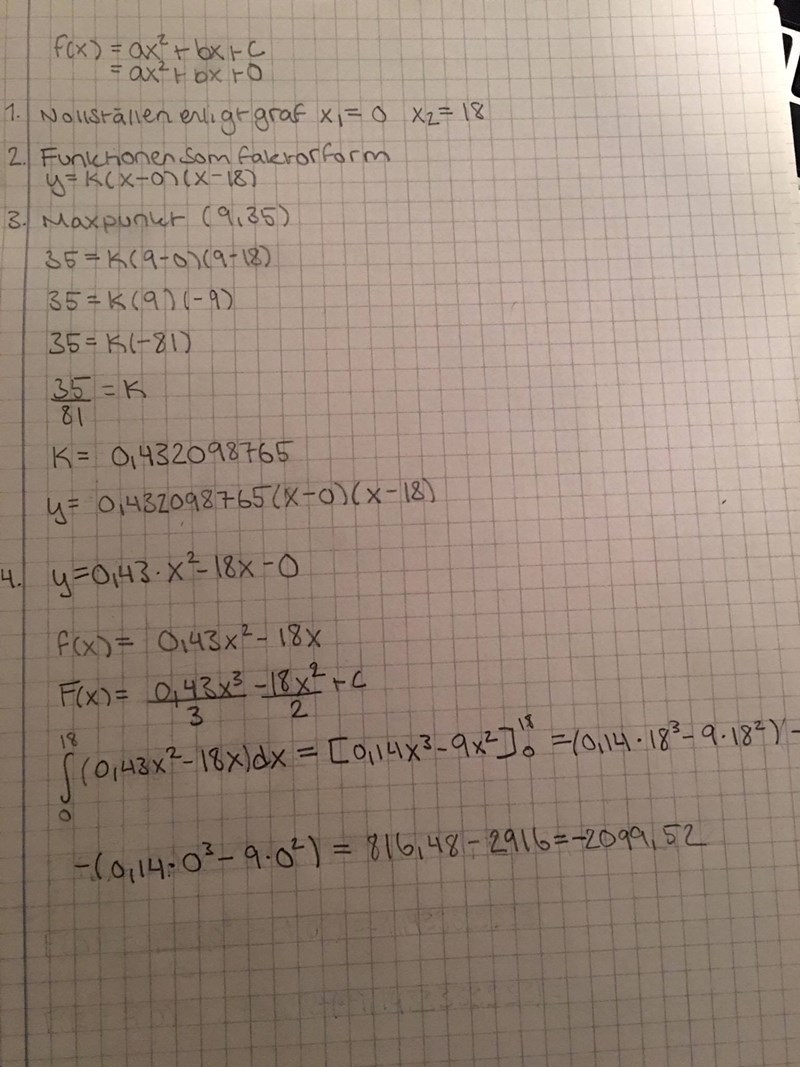 Jag har räknat ut uppgiften på det sätt som jag tror är rätt, men kommer fram till ett negativt svar vilket jag tycker är konstigt då arean inte kan vara negativ.