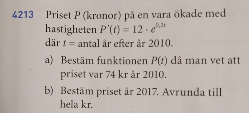 Du vet att f(x)=60e^0,2t + c och att f(0)=74