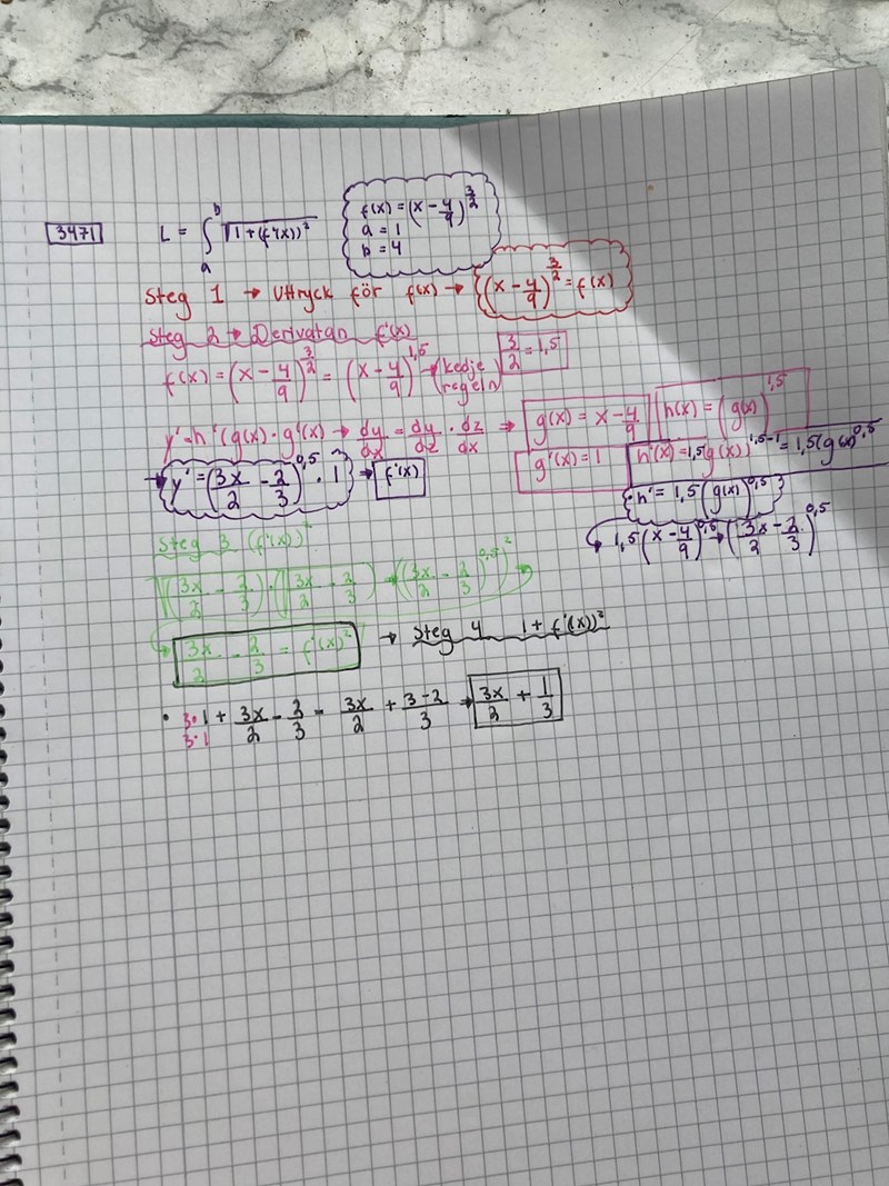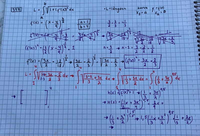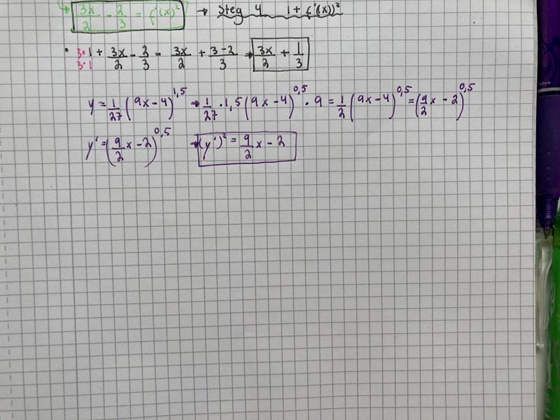 Men sen multiplicerar du in 3/2 in i parentesen, det är inte rätt eftersom parentesen är höjd till 1/2.