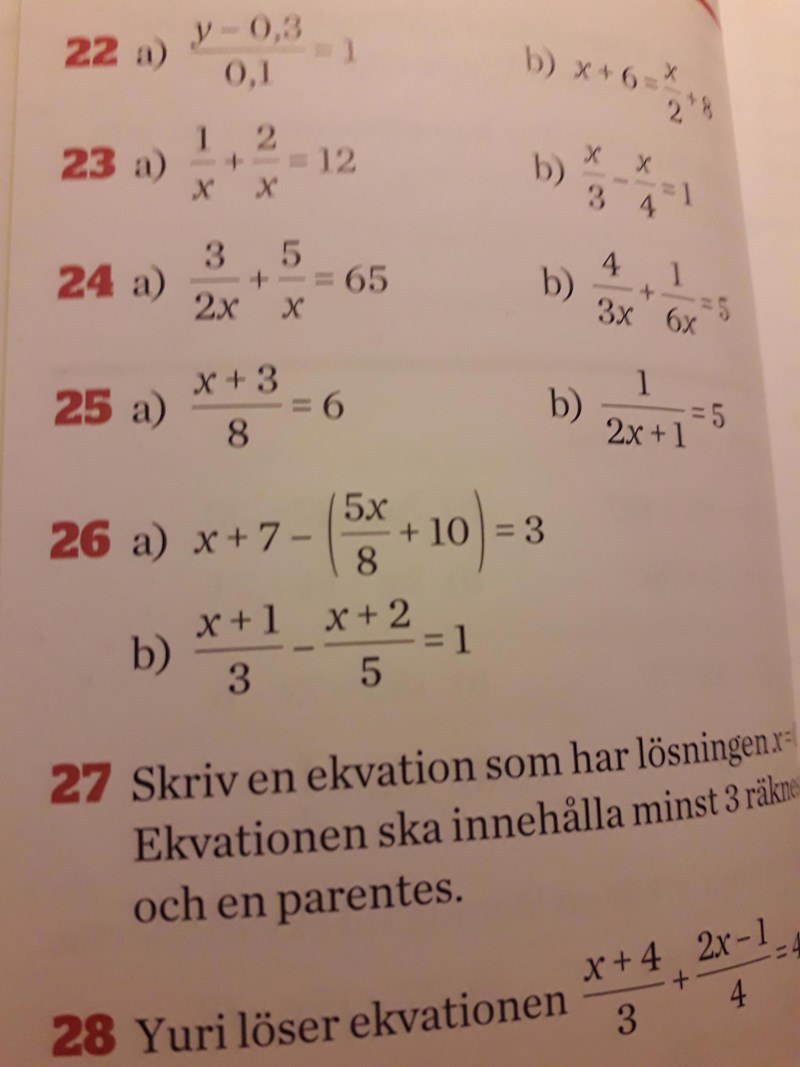 Hej jag skulle behöva lite hjälp med 25 b) och 26 a). Jag har suttit i timtal och räknat och försök, jag har till och med tappat bort uträkningarna till 25 b). Skulle verkligen uppskatta om någon ville hjälpa mig. På 26 a) Så har jag räknat