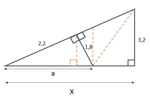 Sedan kan du använda topptriangelsatsen för att räkna ut hypotenusan i den stora triangeln för att slutligen använda pythagoras sats för att få fram X.