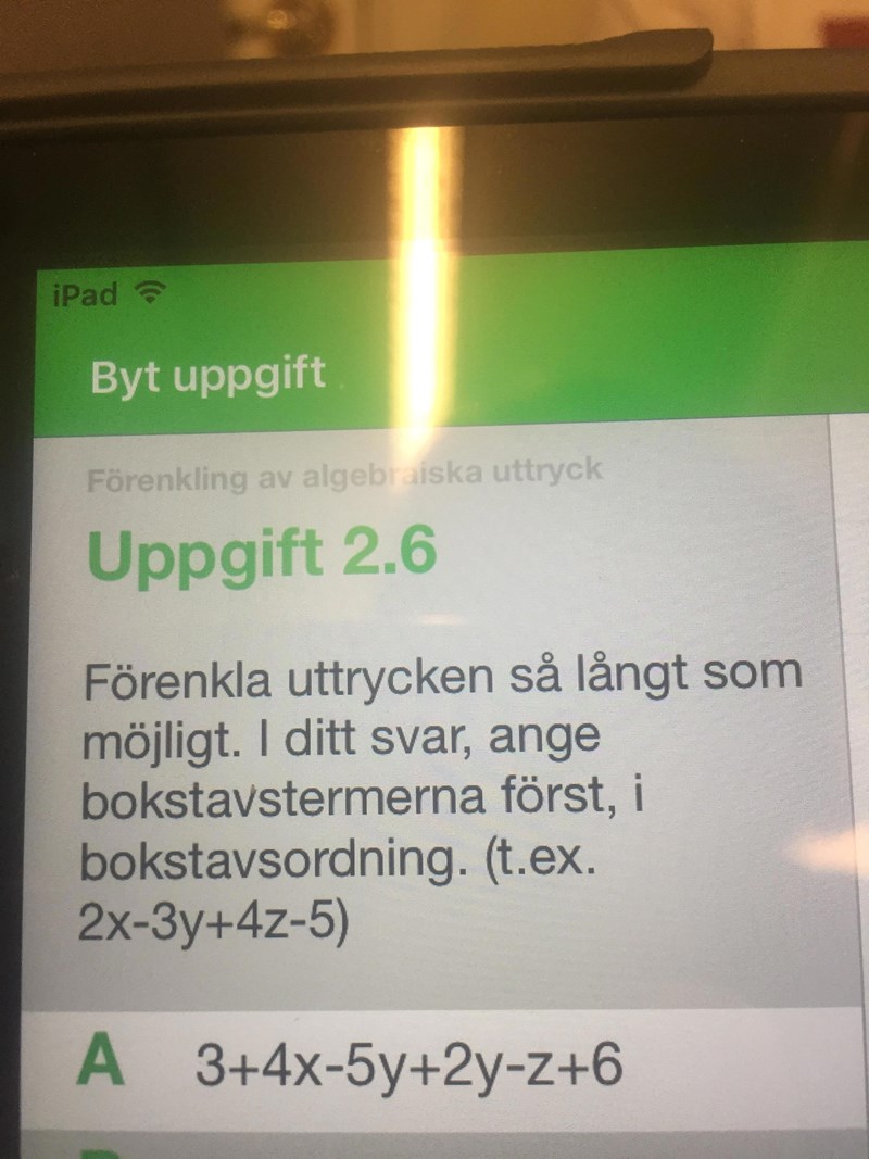 Sedan vill de att du skriver ditt svar med variablerna först, sorterade i alfabetisk ordning.