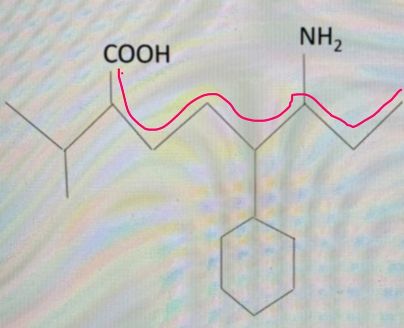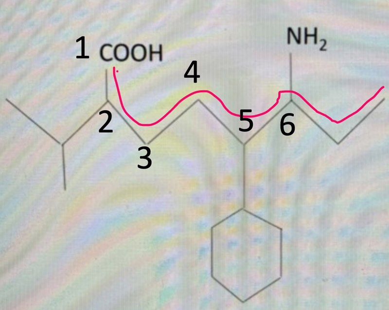 SOm jag vet sitter karboxylsyran alltid längst ut på sådana kedjor men ska man alltså betrakta denna som substituent? Men vad händer med det till vänster om det?