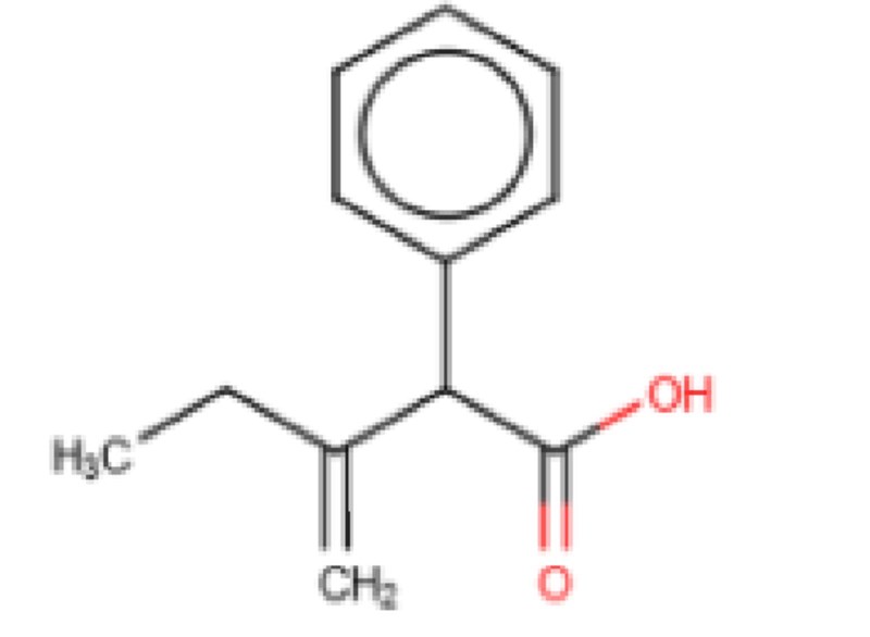 Jag tänker i och med att det är en fyrakolskedja då vi vill ha med dubblebindningen blir namnet 3-etyl-2-fenyl-3-butensyra. Kan ha fel. Mag1 kanske rättar mig.