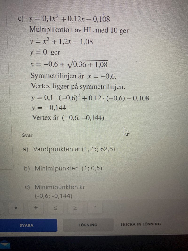 förstår inte varför y blir -0,144 jag får fram det till y= 0,00036-0,072-0,108 vilket inte blir -0,144