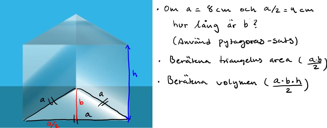 Nej. Basen är 8 cm och höjden av triangeln är 6.92 cm. Hur stor blir arean?