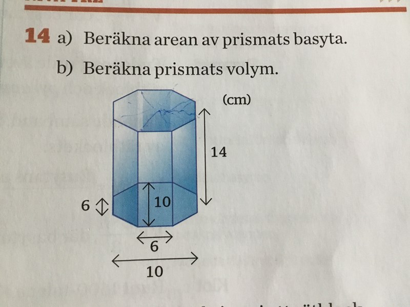 Räkna ihop antalet trianglar i basytan. Tänk sedan på att två trianglar tillsammans har höjden 10cm, vilket betyder att en triangel har höjden 5cm.