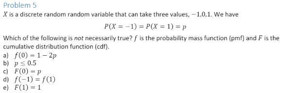 Kan någa säga mig varför b) inte är fel? Jag tycker det borde vara fel men enligt facit är så inte fallet. Jag tycker p borde vara mindre eller likamed 1/3 istället för 1/2 då sannolikheten skall delas lika på tre olika värden (-1,0,1).