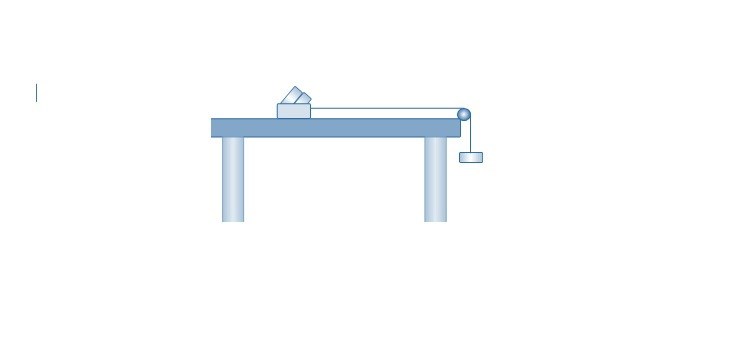 Man får misstänka att bordskanten kan approximeras med en friktionslös trissa samt att dragkraften i snöret är parallell med bordskanten. Annars behöver vi se bild på uppställningen.