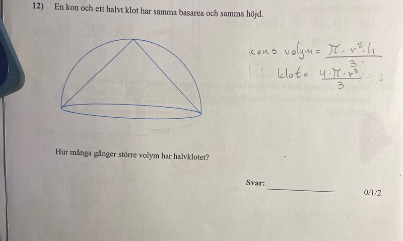 Problem lösning (geometri) (klot och kon)