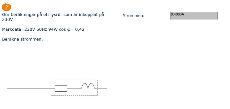 Som jag föstår kan jag inte räkna ut impedansen, reaktansen eller någon form av resistans, för att på det sättet sen räkna ut strömmen? Kan ej heller få tag på värdet i induktansen, och kretsen har ingen kapacitator så kapaciteten hjälper mig inte heller..