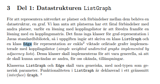 Borde varit tydligare och skickat med lite instruktioner och metoden stort tack för att du tog dig tiden att kolla på det om detta kan hjälpa får du gärna kolla ytterligare jag har gått igenom instruktioerna och det står inte att vi skall implmentera vår 3.2 uppgift Edge för att kunna fortsätta utveckla ListGraph