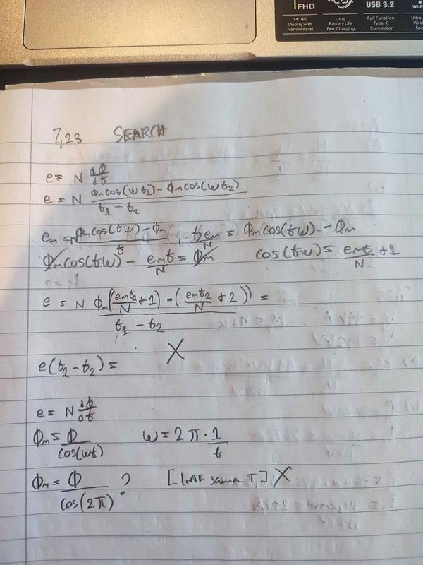 Varför kunde du bryta ur (Φmcosωt) från det övre deltavärdet? Delta*Variabel kan man väll inte bara separera på det sättet? Delta är väll i förhållande till variabeln man har "bundit" den till? Man kan väll inte skriva: a = db, b = a/d