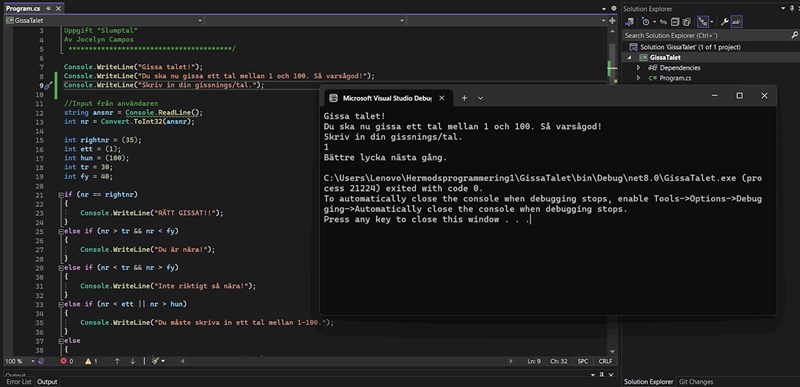 Här ovan kan man se att filen körts och fungerar. Enda skillnaden är att jag i efterhand lagt in kommentarer.