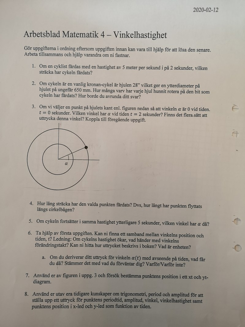 2. Räkna ut hur många grader (eller radianer) hjulet gör per sekund