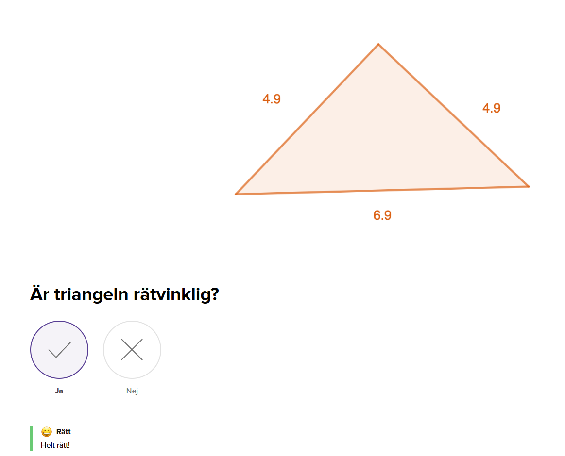 Triangeln är inte rätvinklig, men jag har svarat JA för att komma vidare.