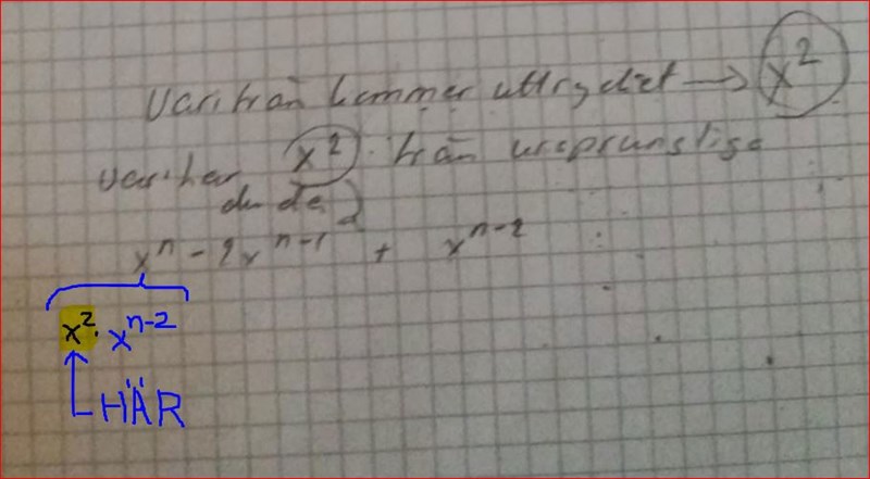 Sedan har vi kvar sista. Nu har vi x ^n-2
