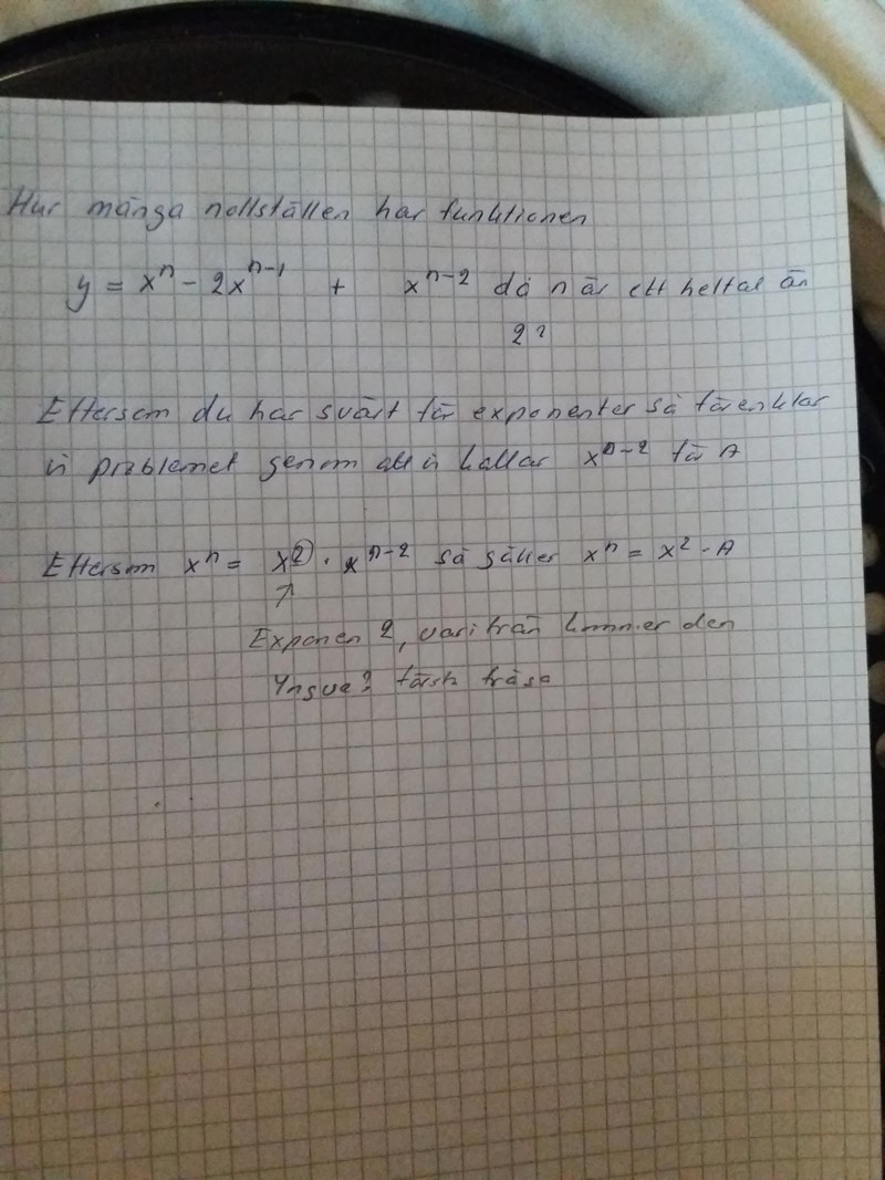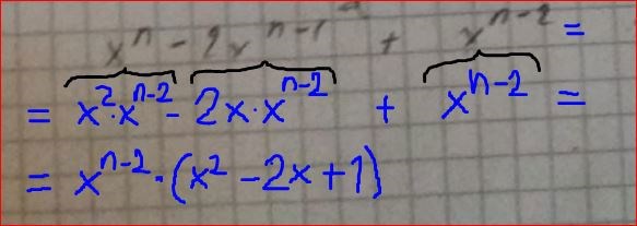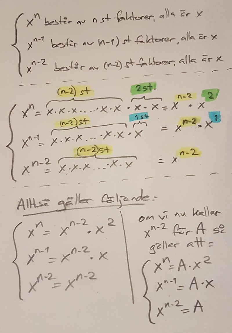Eftersom du har svårt för exponenter så förenklar vi problemet genom att vi kallar xn−2xn2 för A.