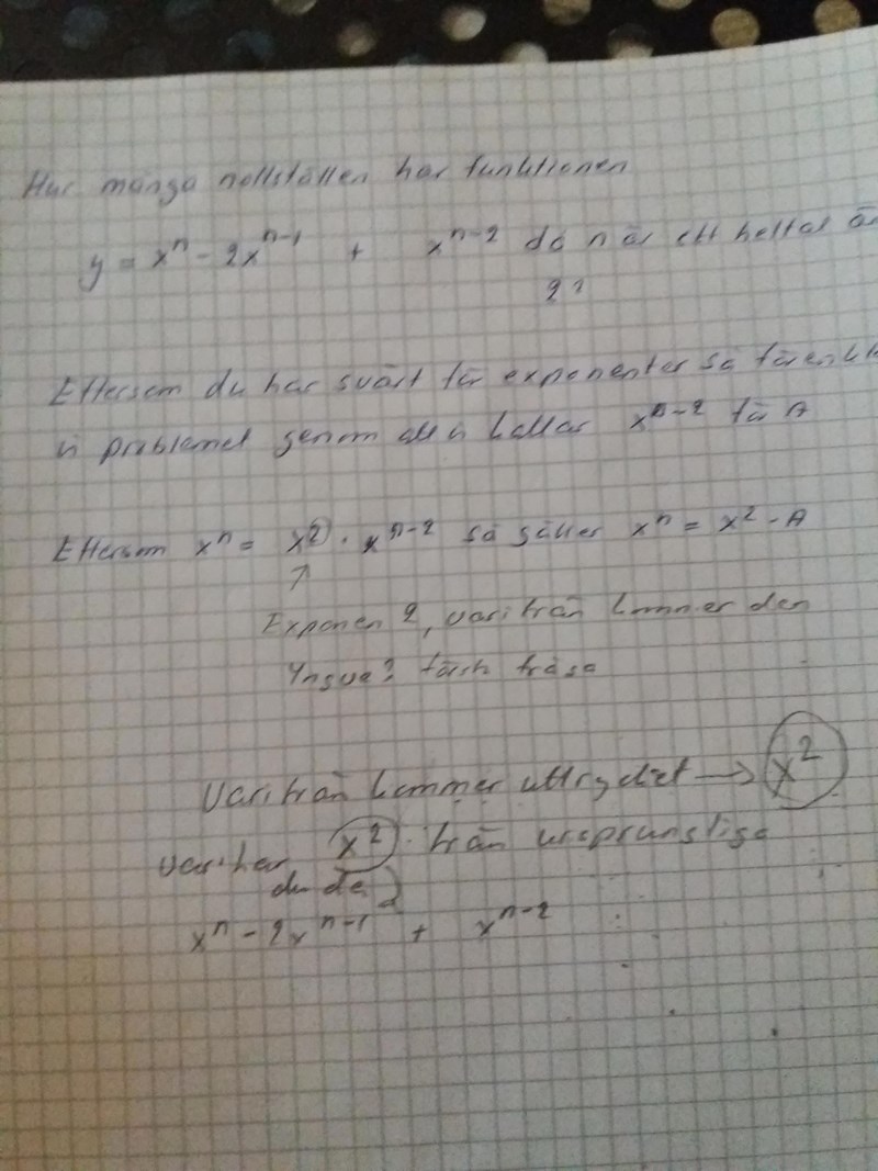 Hur många nollställen har funktionen y=xn−2xn−1+xn−2yxn2xn1xn2, då n är ett heltal större än 2?