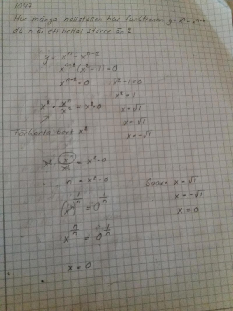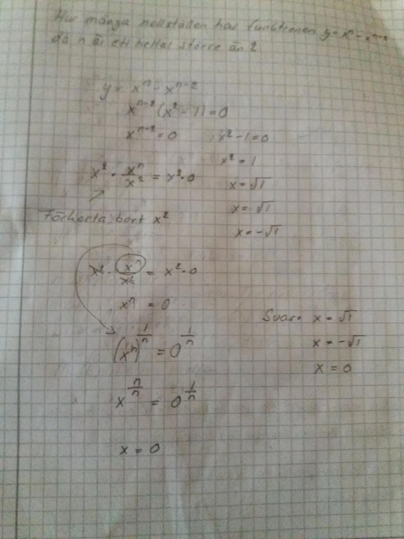 x^ n-2= 0 ( nollprodukts metoden.