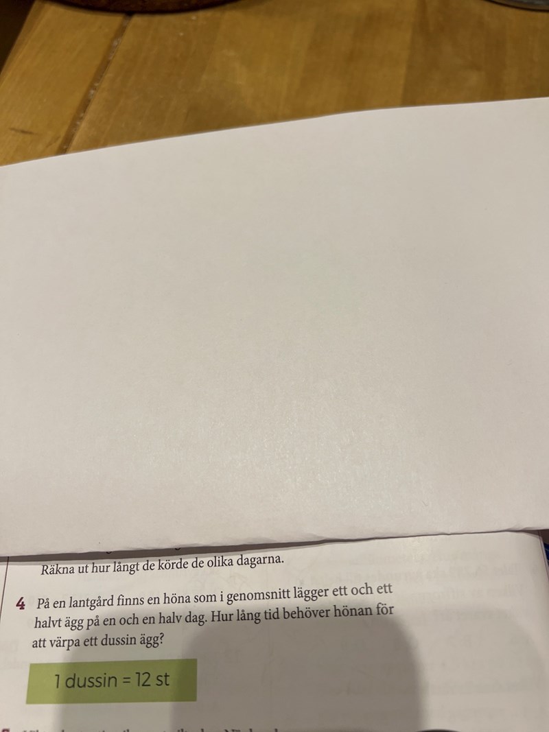 Hönan lägger 1.5 ägg per 12h, vi vill veta hur lång tid det tar att lägga 12st. '