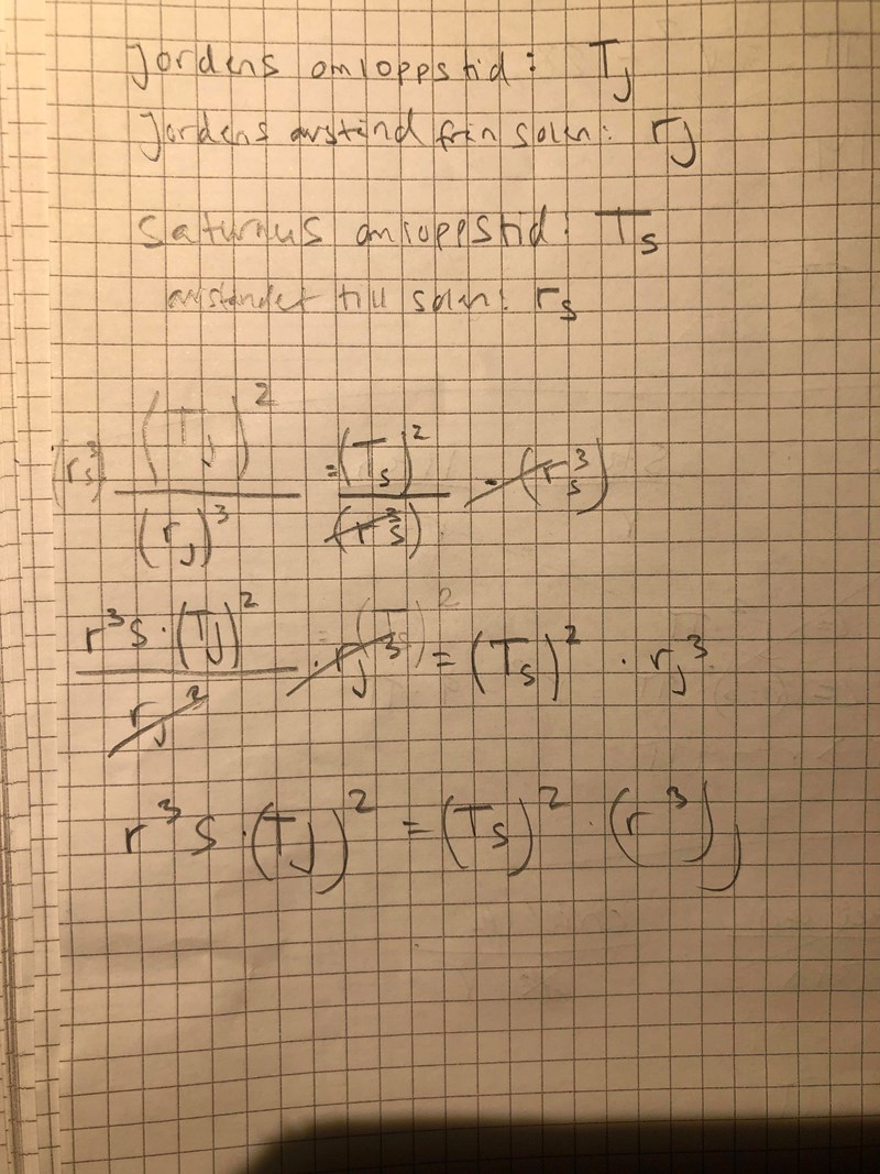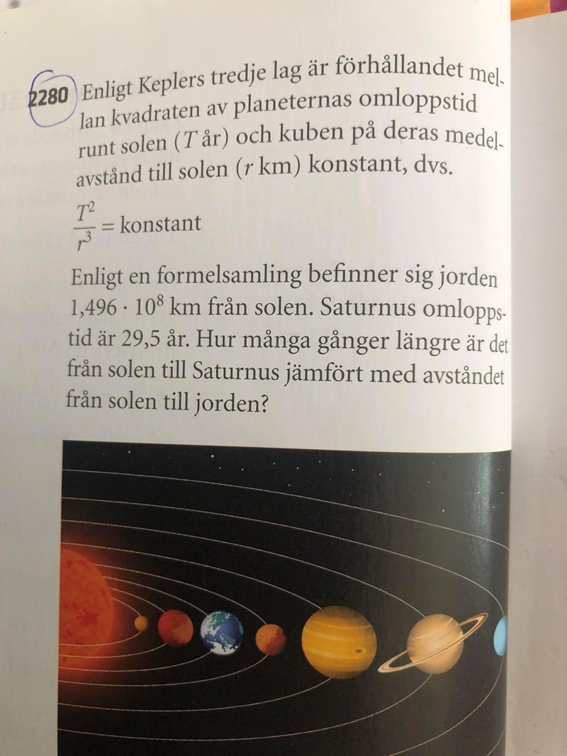 omloppstiden för alla planeter upphöjt till 3 delat med avståndet till solen upphöjt till 2 ger en lika lång sträcka... Jag vet inte hur jag ska lösa den uppgiften.