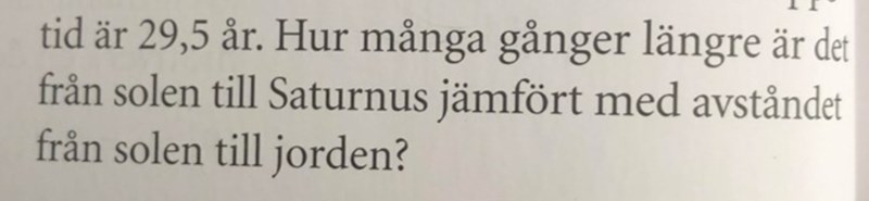 Det som efterfrågades var ju nämligen hur många gånger längre det är från solen till Saturnus jämfört med från solen till jorden.