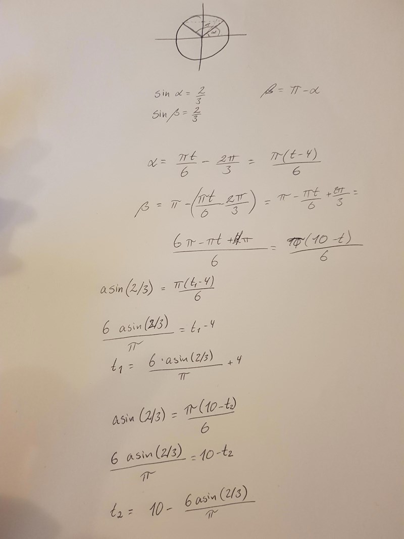 Fastnade sedan där man ska ta sinus inversen av 2/3 Någon som kan hjälpa mig vidare?