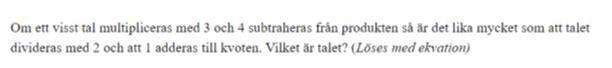 Översätt sedan texten i uppgiften till en ekvation.