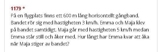 Smaragdalena skrev:Vilken hastighet har Maja relativt marken? Hur lång tid tar det för henne att flytta sig 600 m? Hur långt har Emma kommit på samma tid? Hur långt har hon kvar?