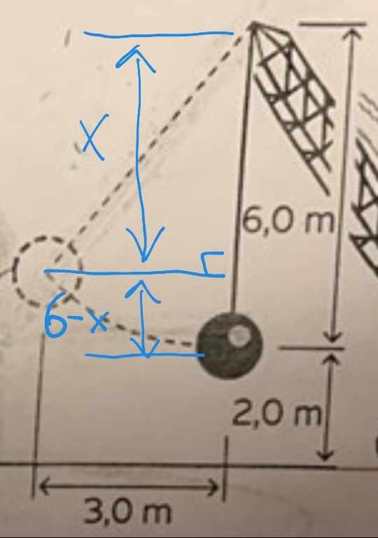 du kom ju fram till att den andra katetern blir runt 5 (5,196152422706632 för att vara exakt). Nu har du har du den andra katetern (höjden). Nu ska du bara subtrahera den totala längden (6,0m + 2,0m) med 5,19... Vad får du för svar du :)?