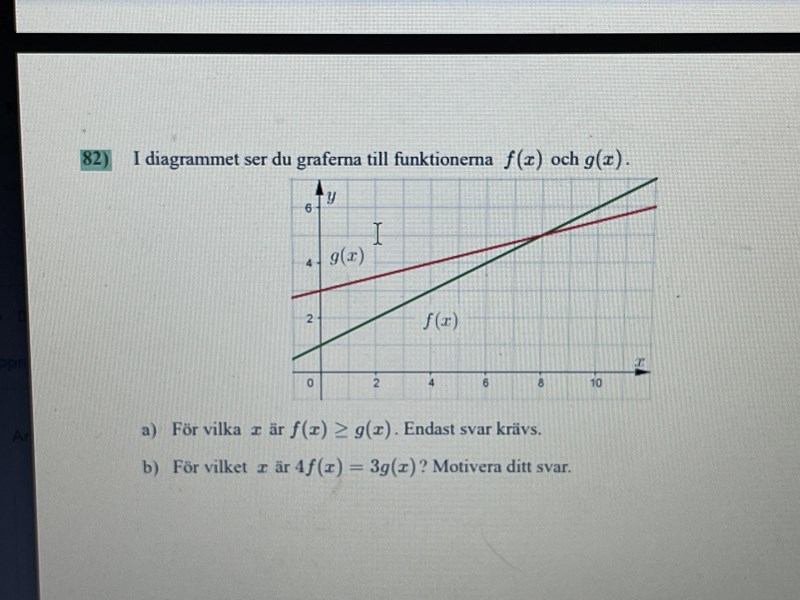 Vad är ?Sätt 4·f(x) = 3·g(x) och räkna ut x.